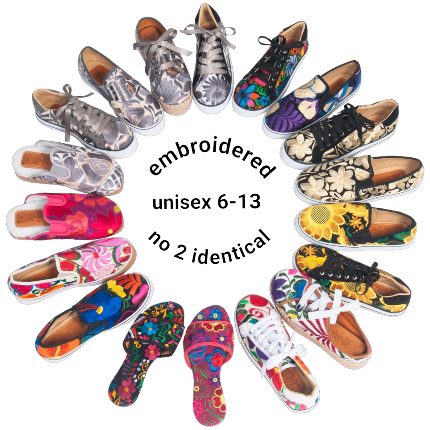 Freedazz UNISEX footwear is crafted from custom designed fabric that is meticulously hand loomed and embroidered over 14 days. The slight variations result in 1-of-a-kind pairs of exceptional quality and longevity. Photos are for representational purposes only.
