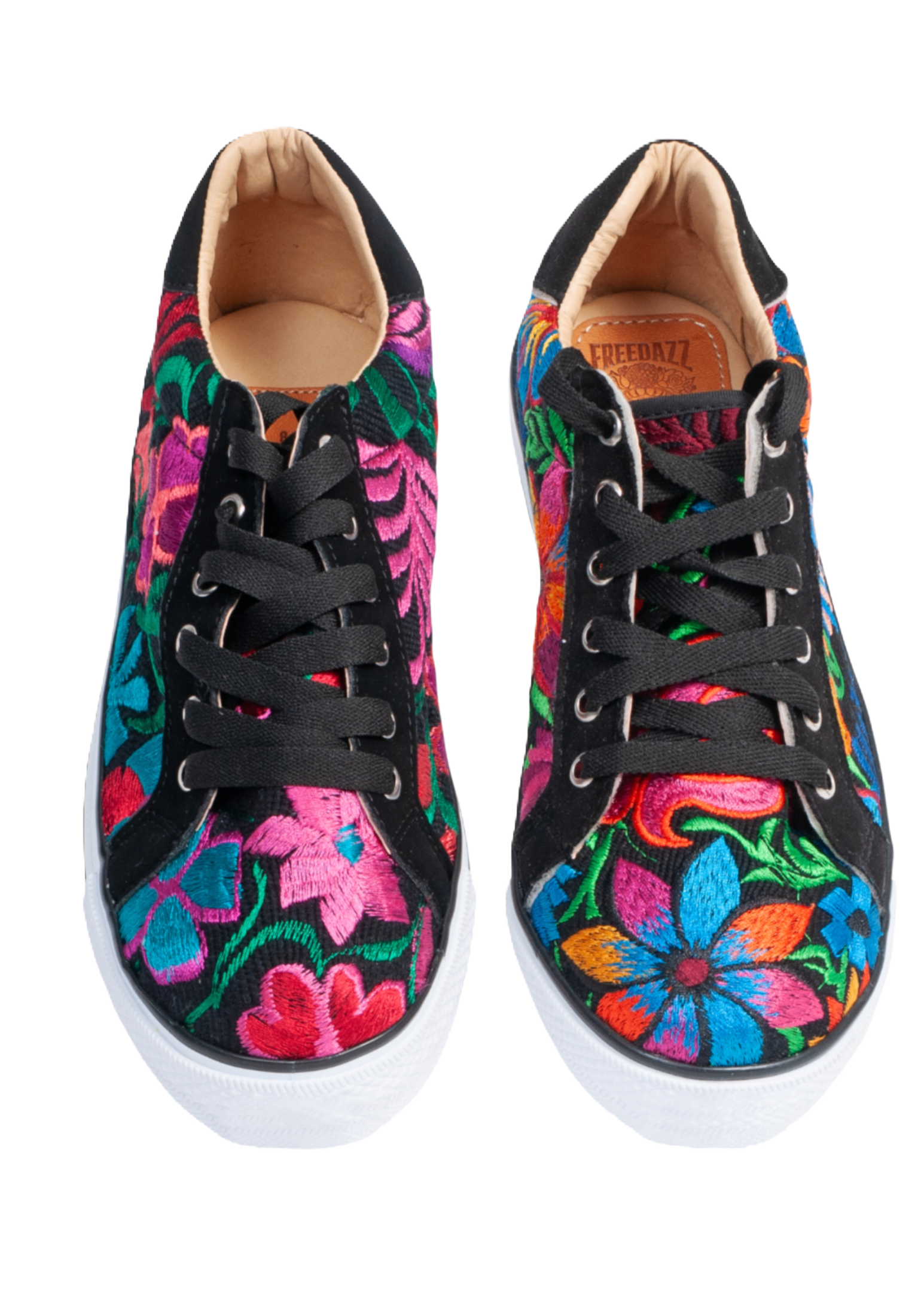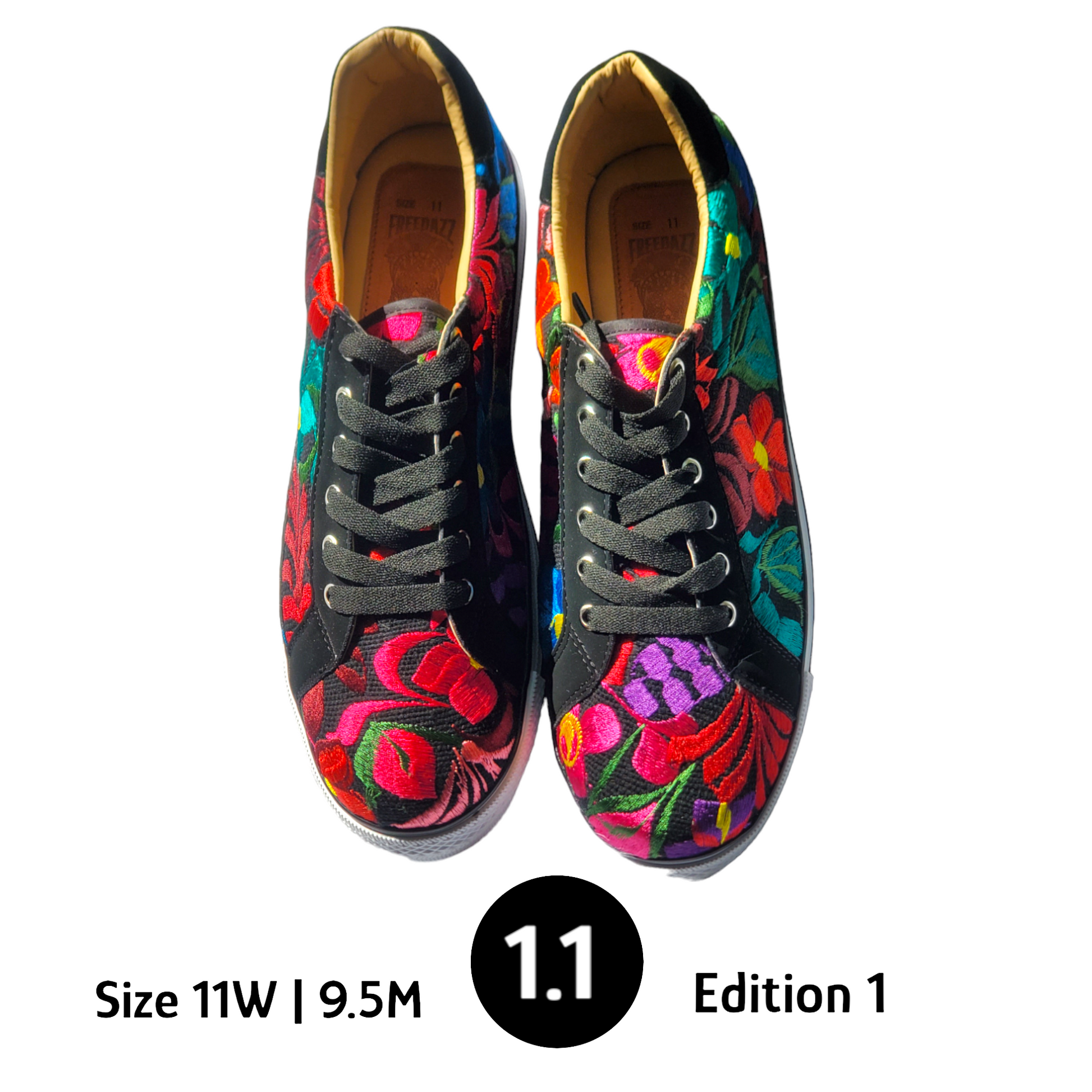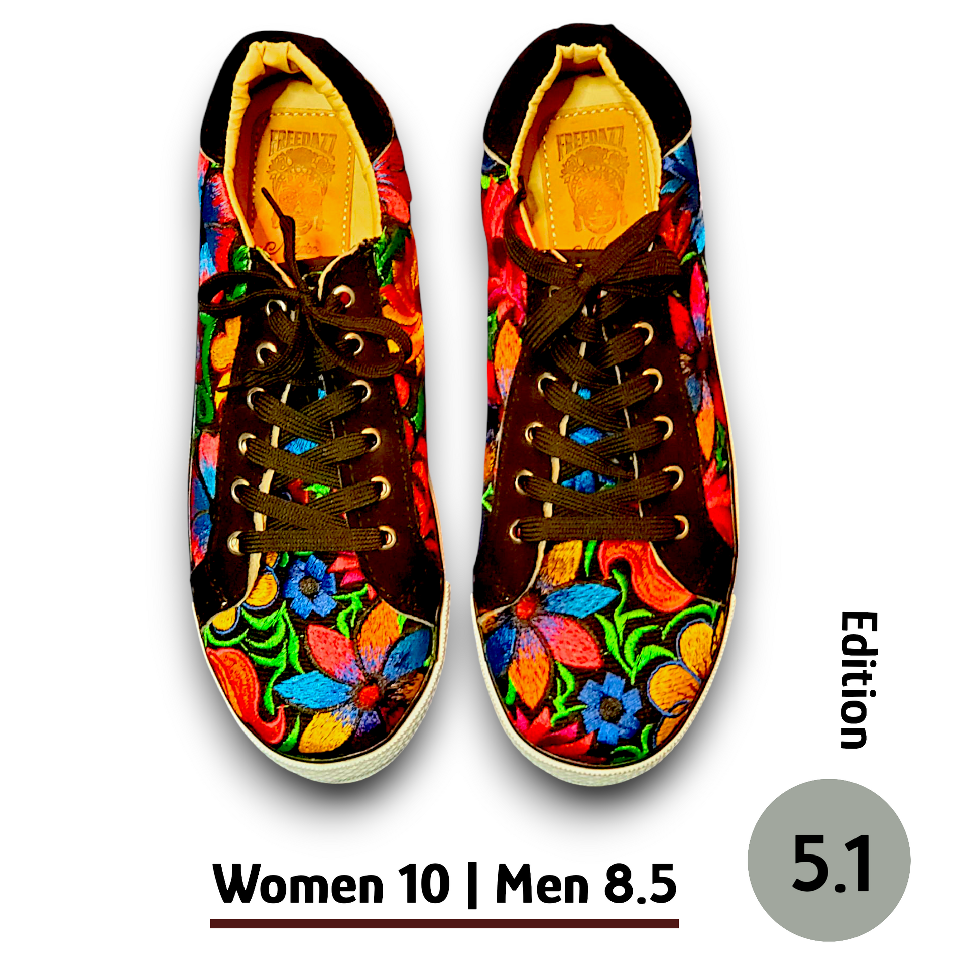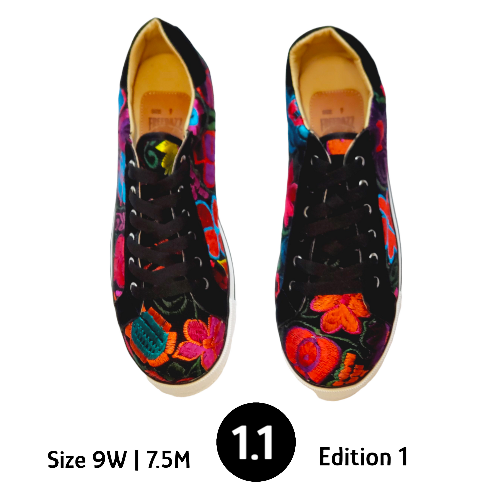A high octane pop of color for the confident fashionista/o who draws attention wherever they go. Features embroidered kaleidoscopic florals and cushy padding with ample arch support atop a comfortable 1" sole. Stylishly transition from brunch to afternoon escapades to an evening concert!