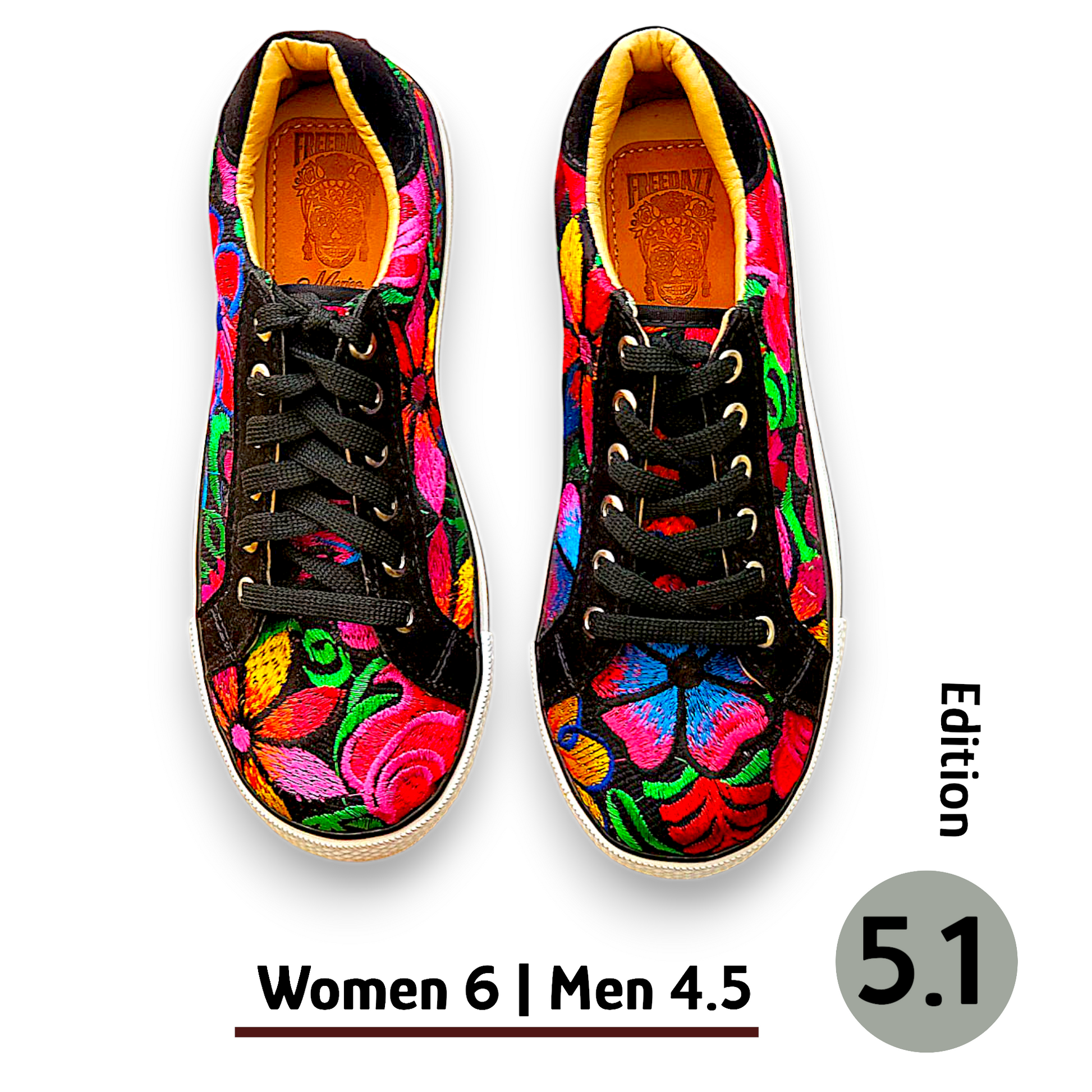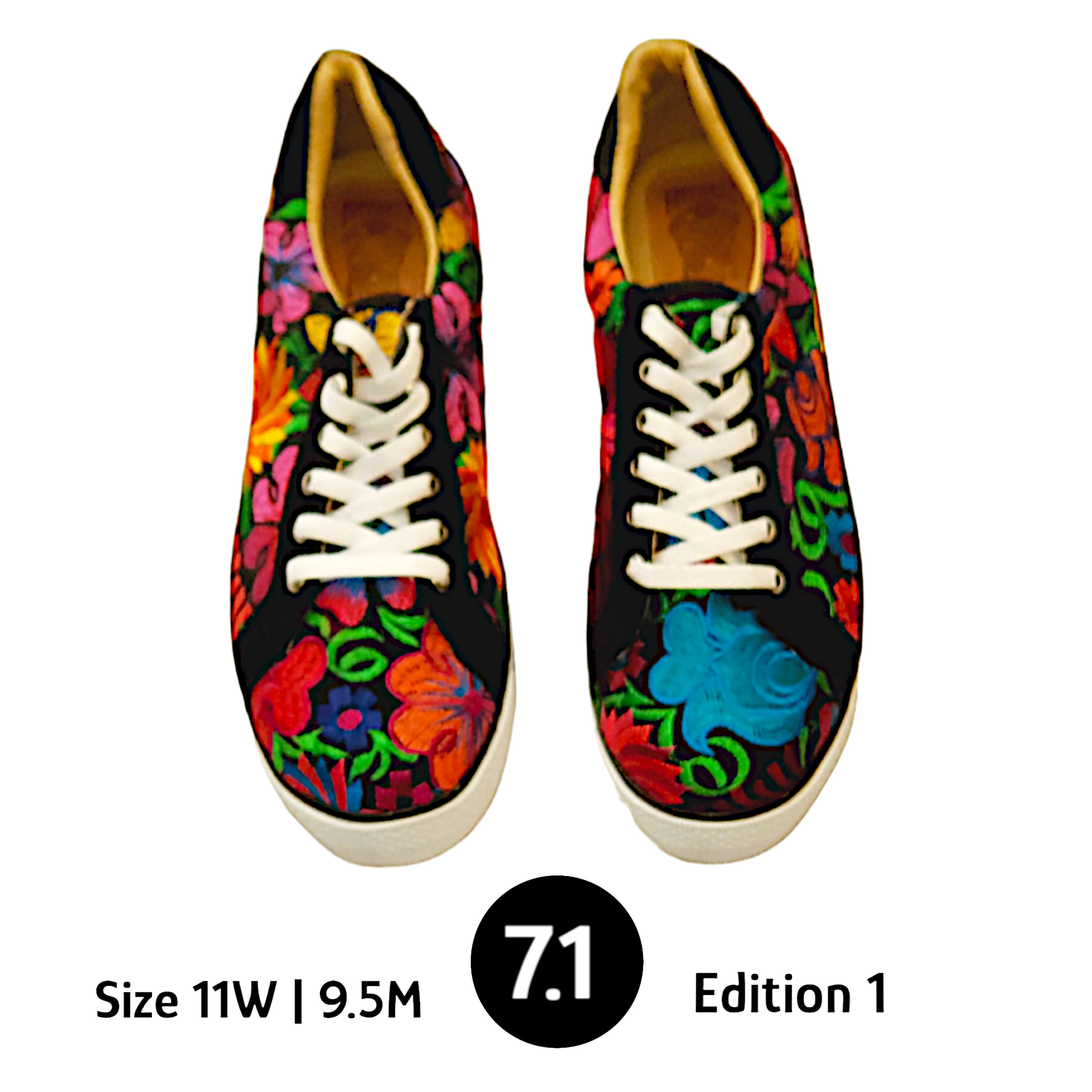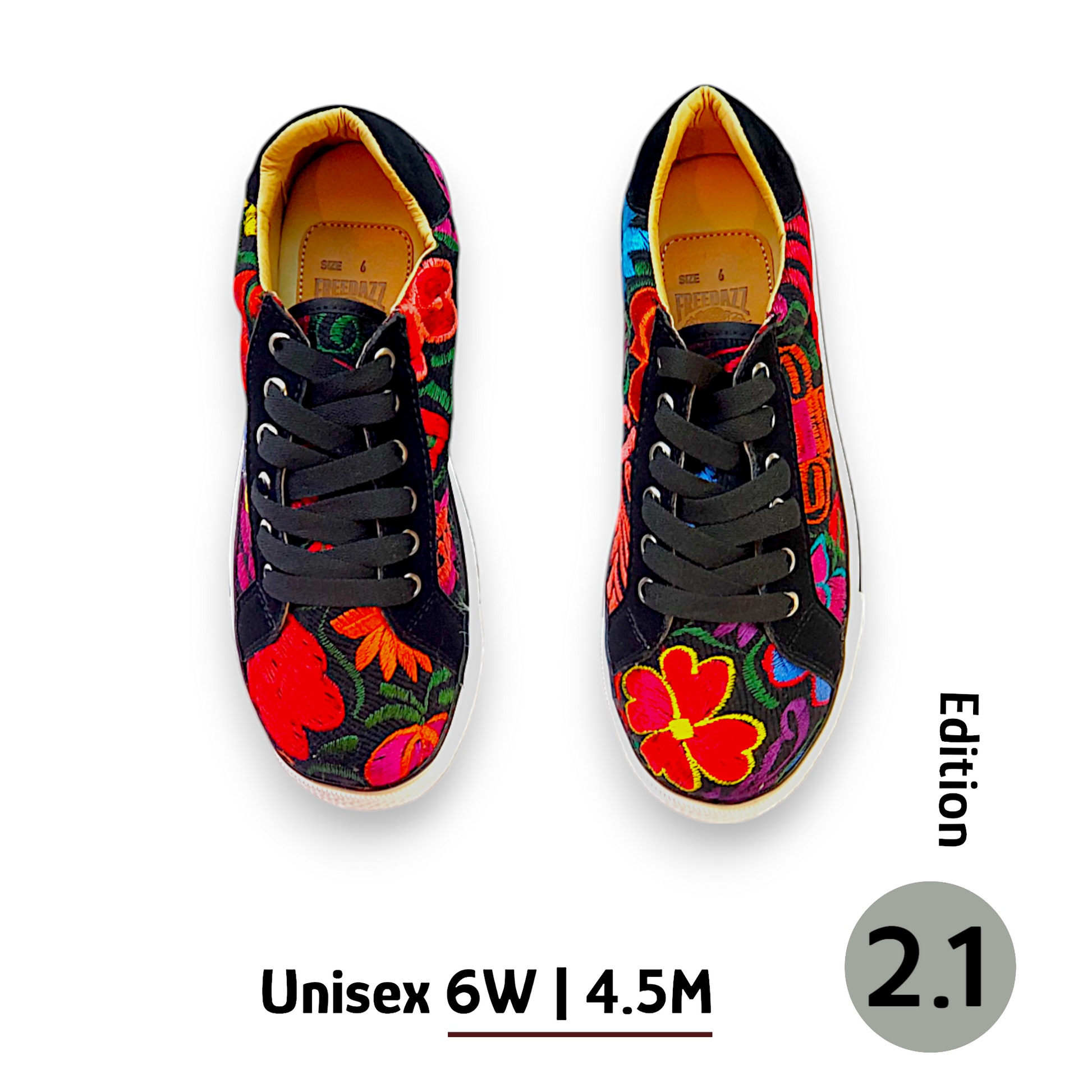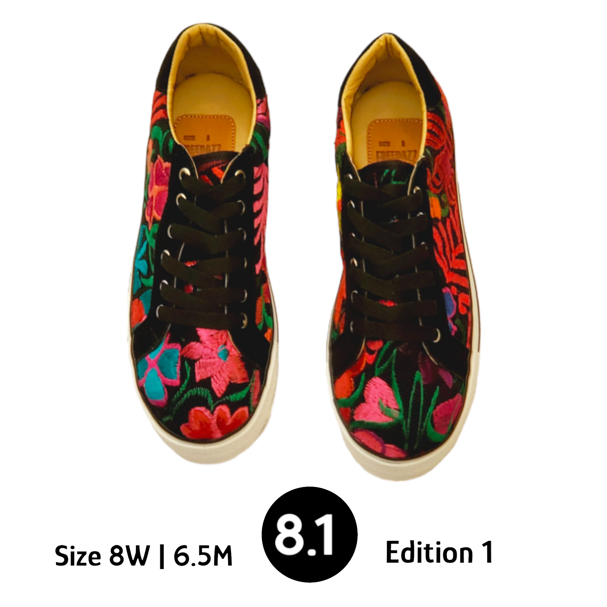 A high octane pop of color for the confident fashionista/o who draws attention wherever they go. Features embroidered kaleidoscopic florals and cushy padding with ample arch support atop a comfortable 1" sole. Stylishly transition from brunch to afternoon escapades to an evening concert!