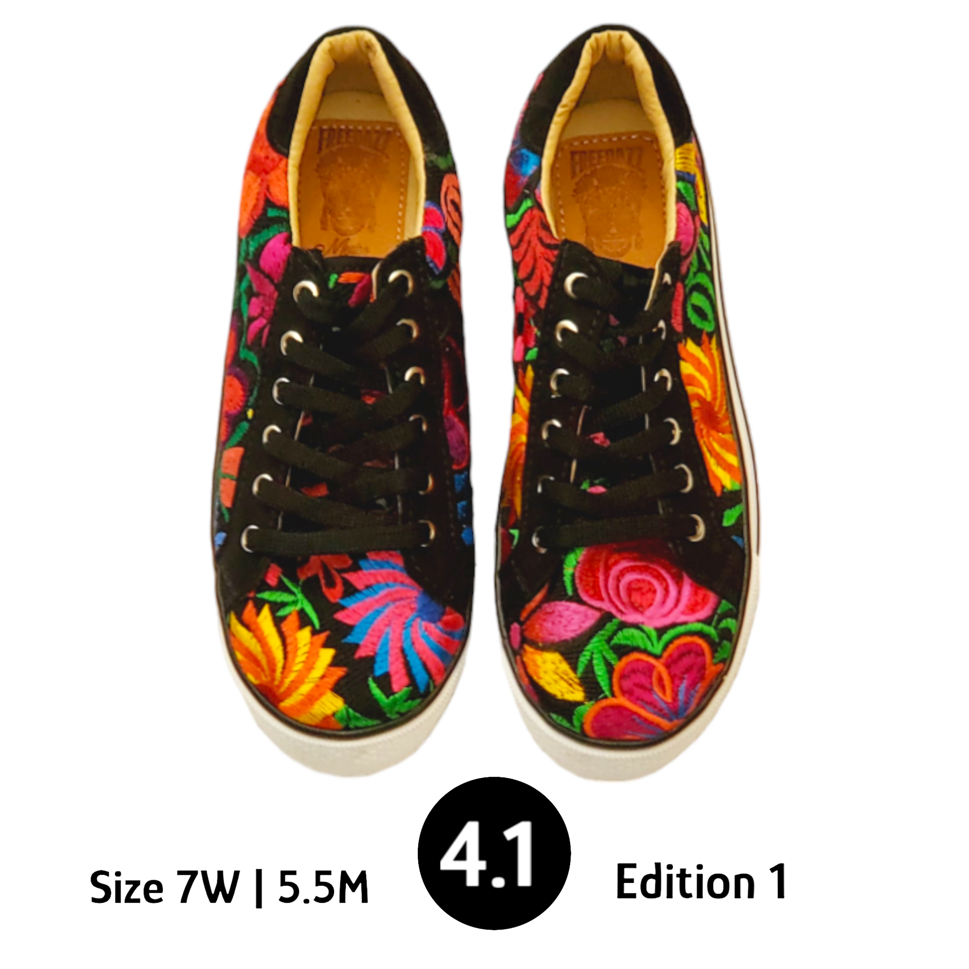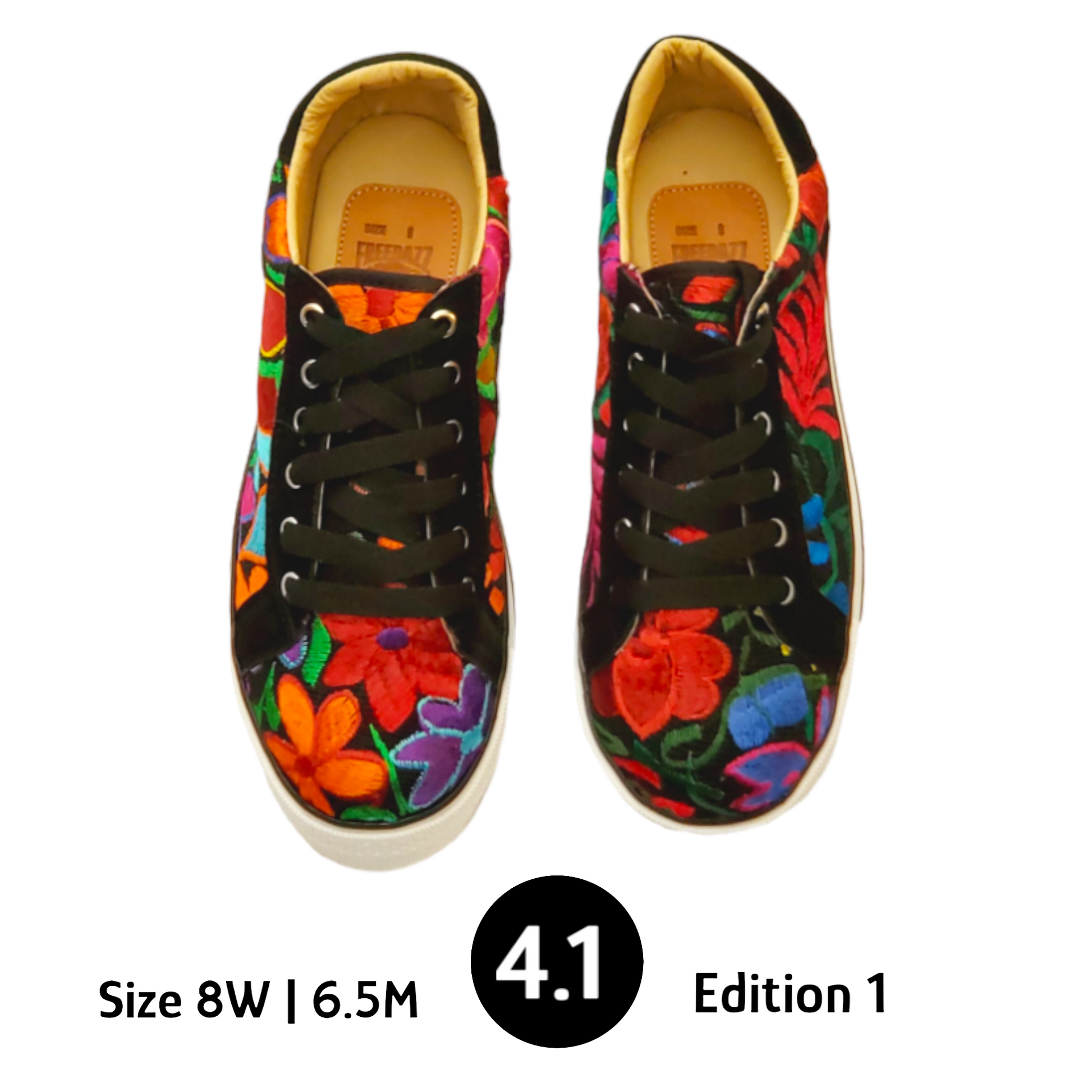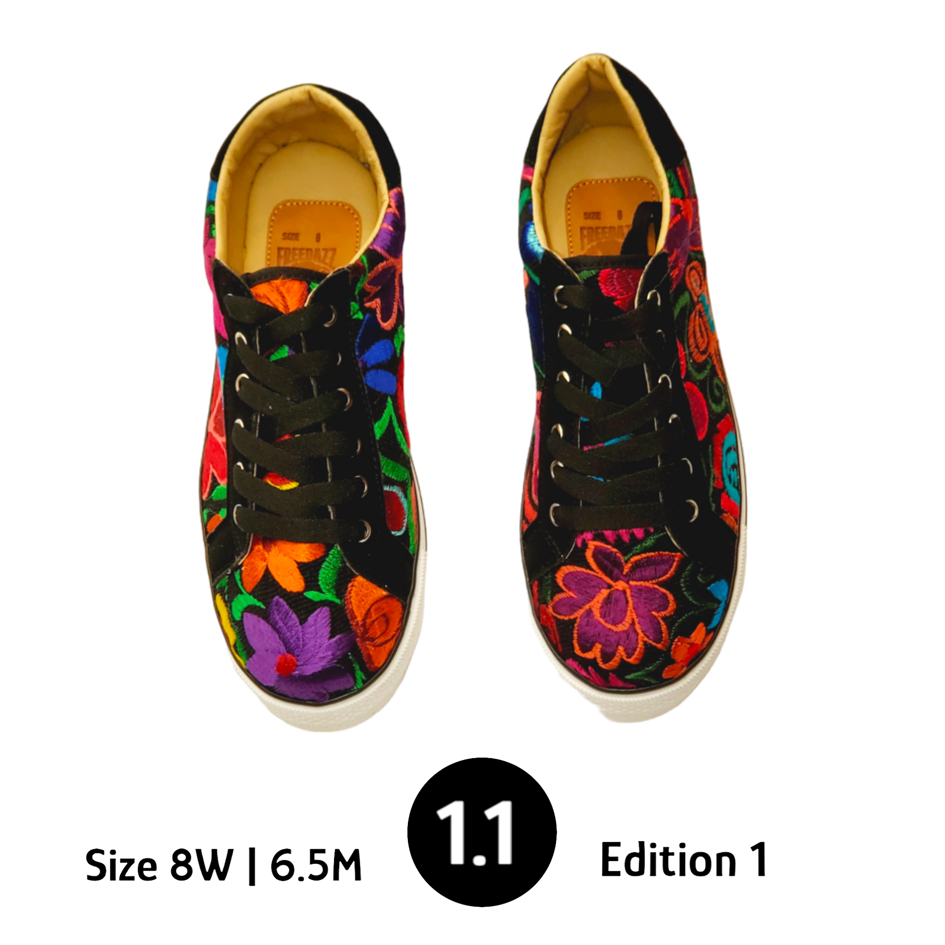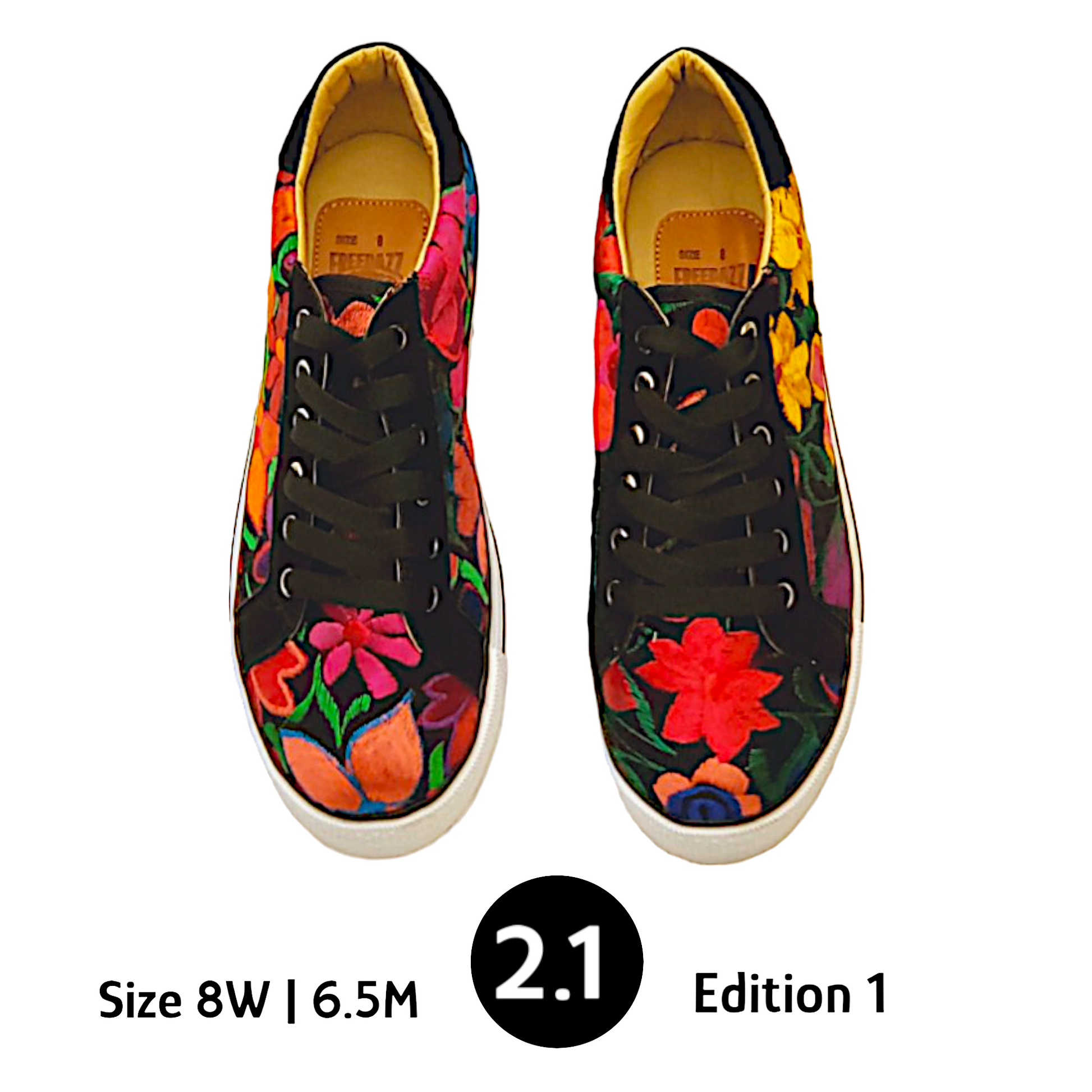 A high octane pop of color for the confident fashionista/o who draws attention wherever they go. Features embroidered kaleidoscopic florals and cushy padding with ample arch support atop a comfortable 1" sole. Stylishly transition from brunch to afternoon escapades to an evening concert!