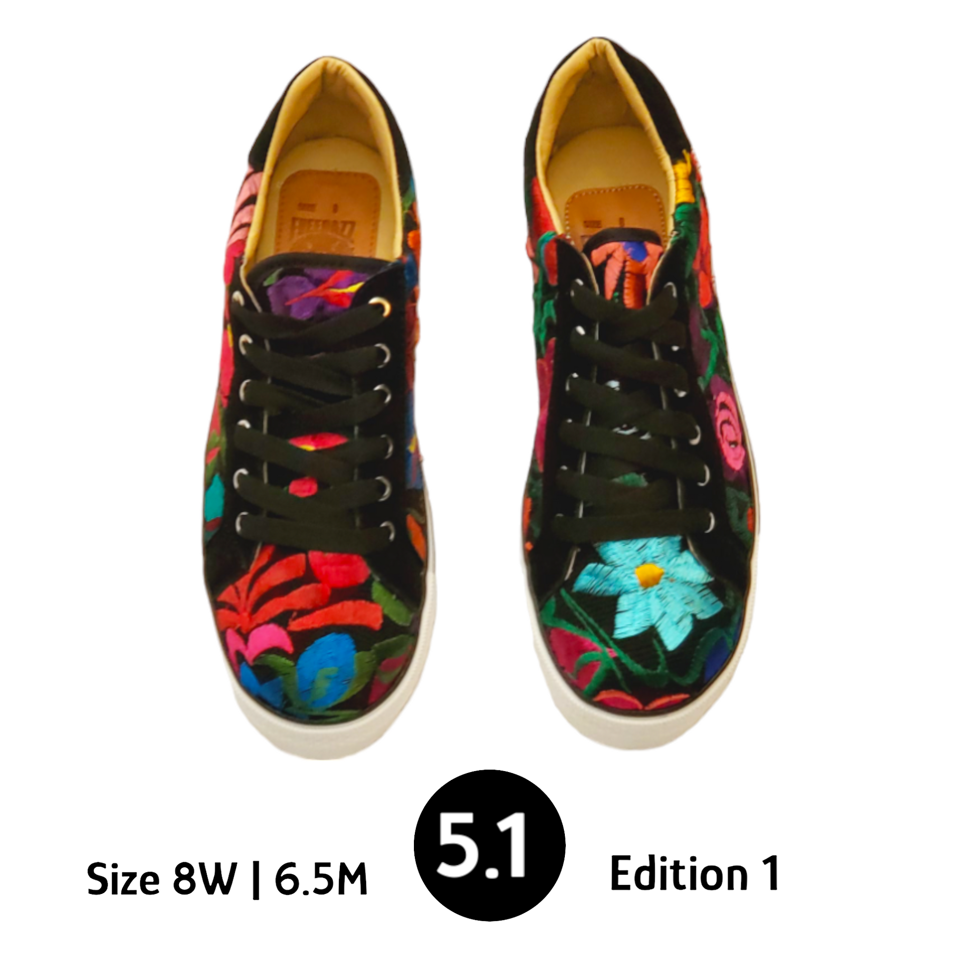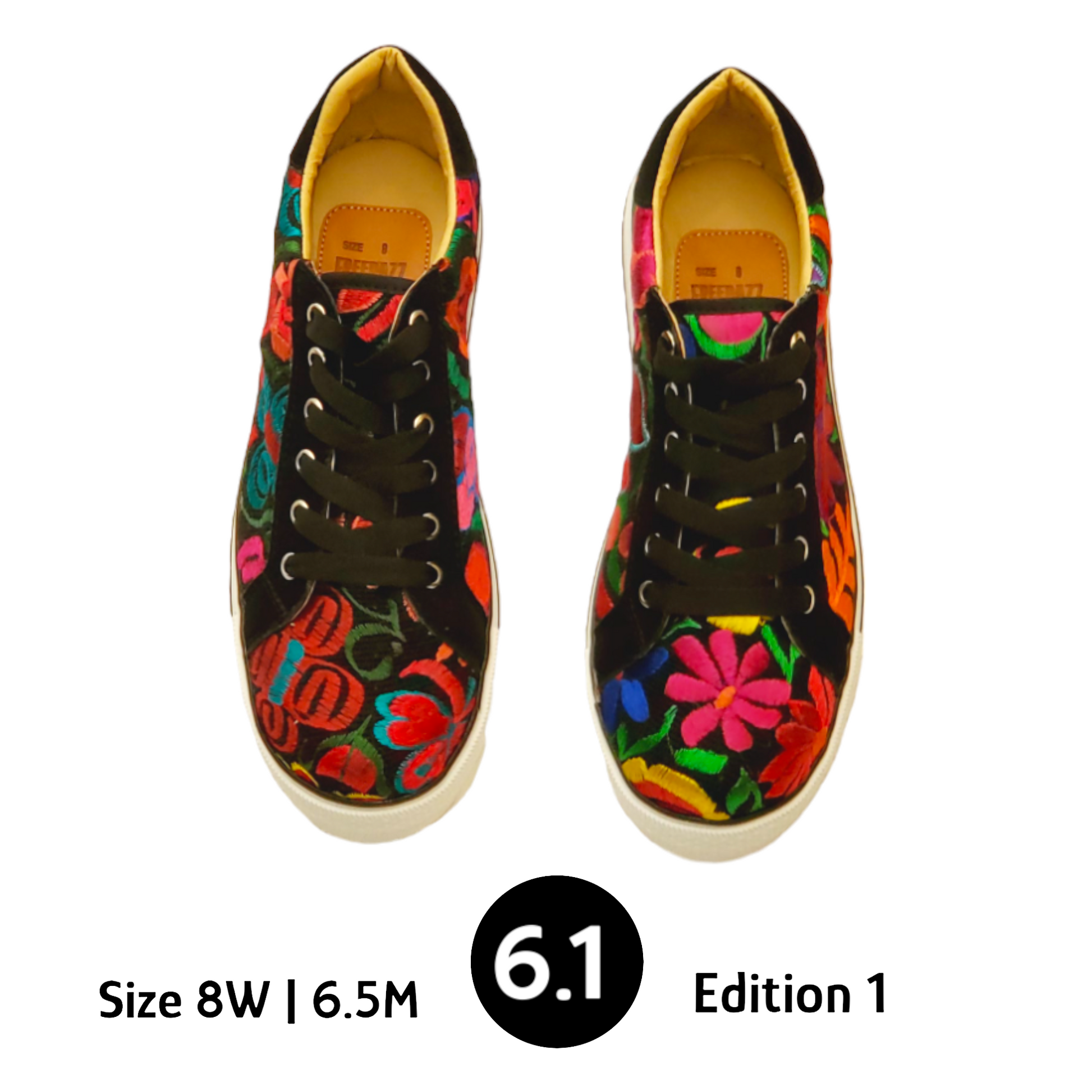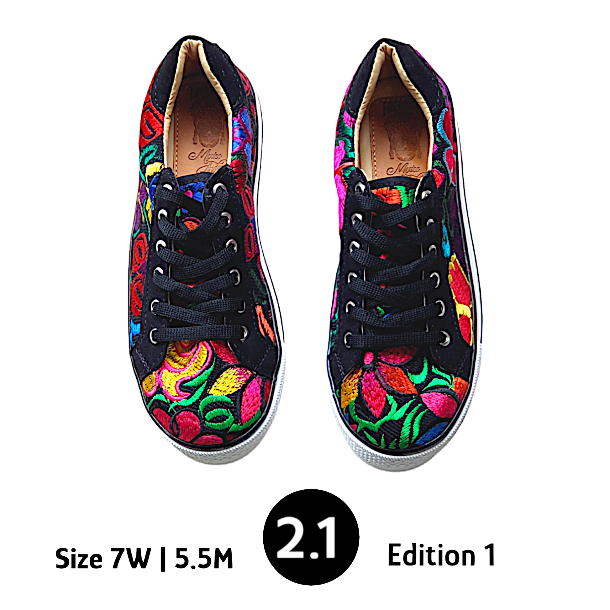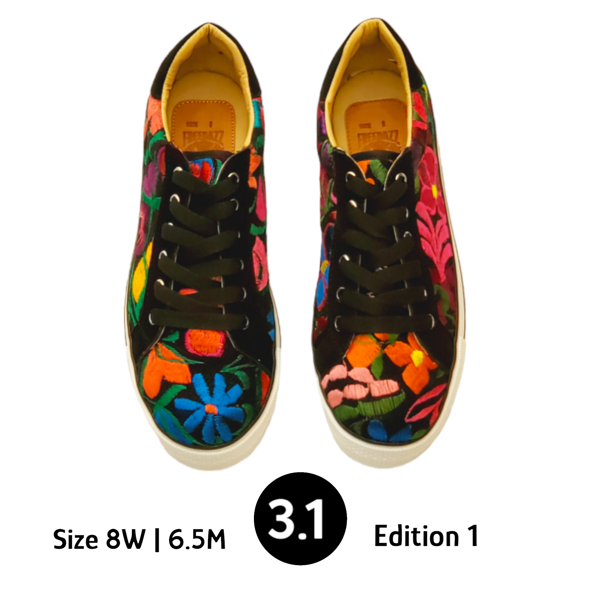 A high octane pop of color for the confident fashionista/o who draws attention wherever they go. Features embroidered kaleidoscopic florals and cushy padding with ample arch support atop a comfortable 1" sole. Stylishly transition from brunch to afternoon escapades to an evening concert!