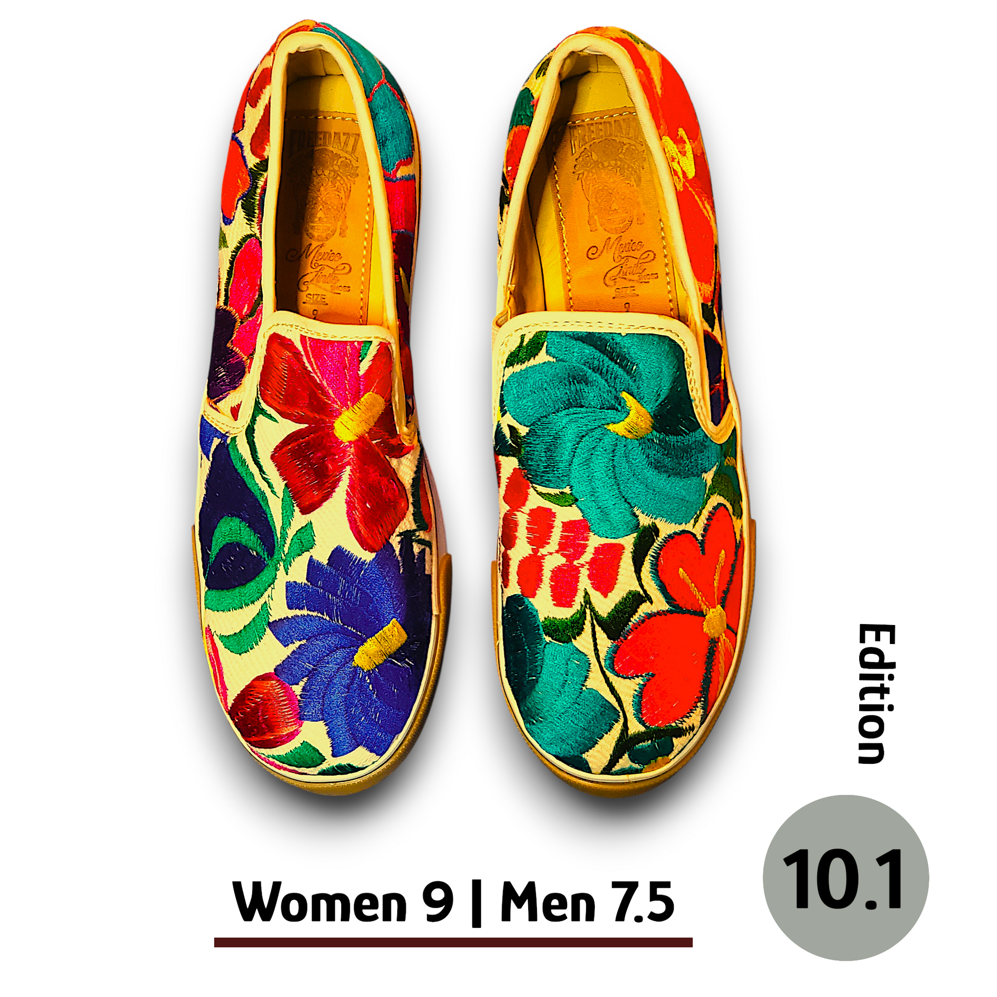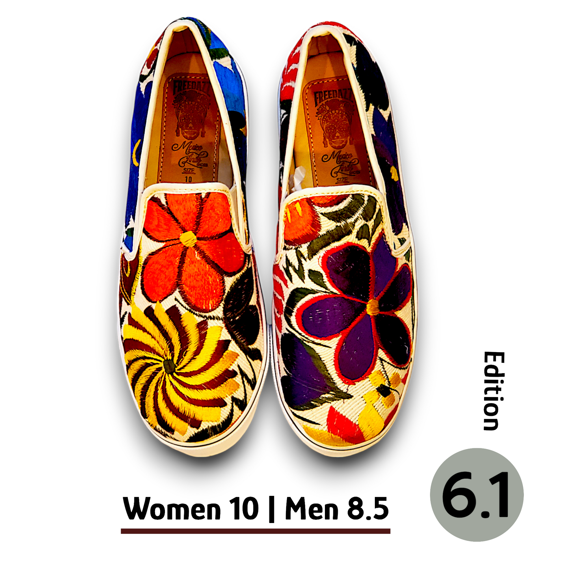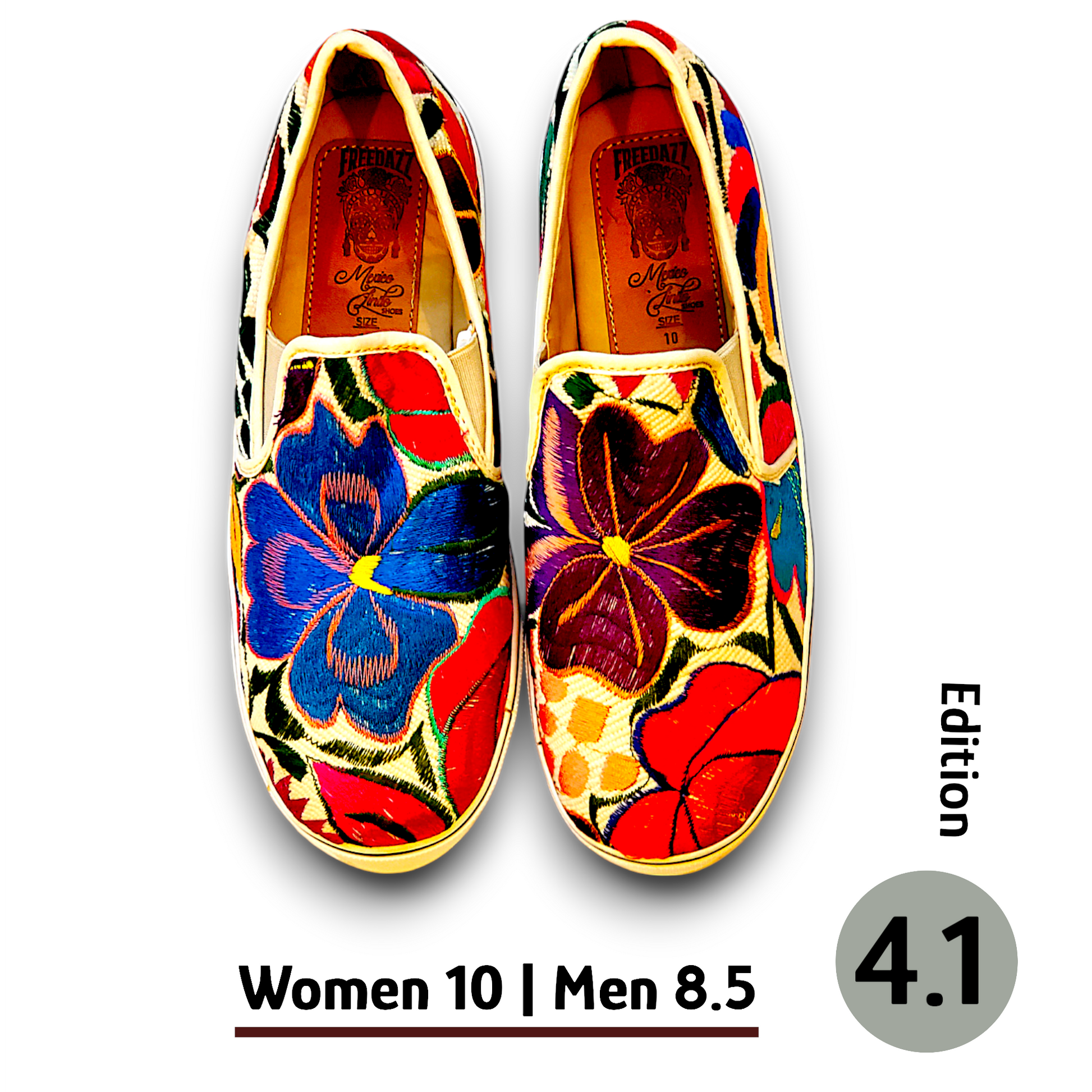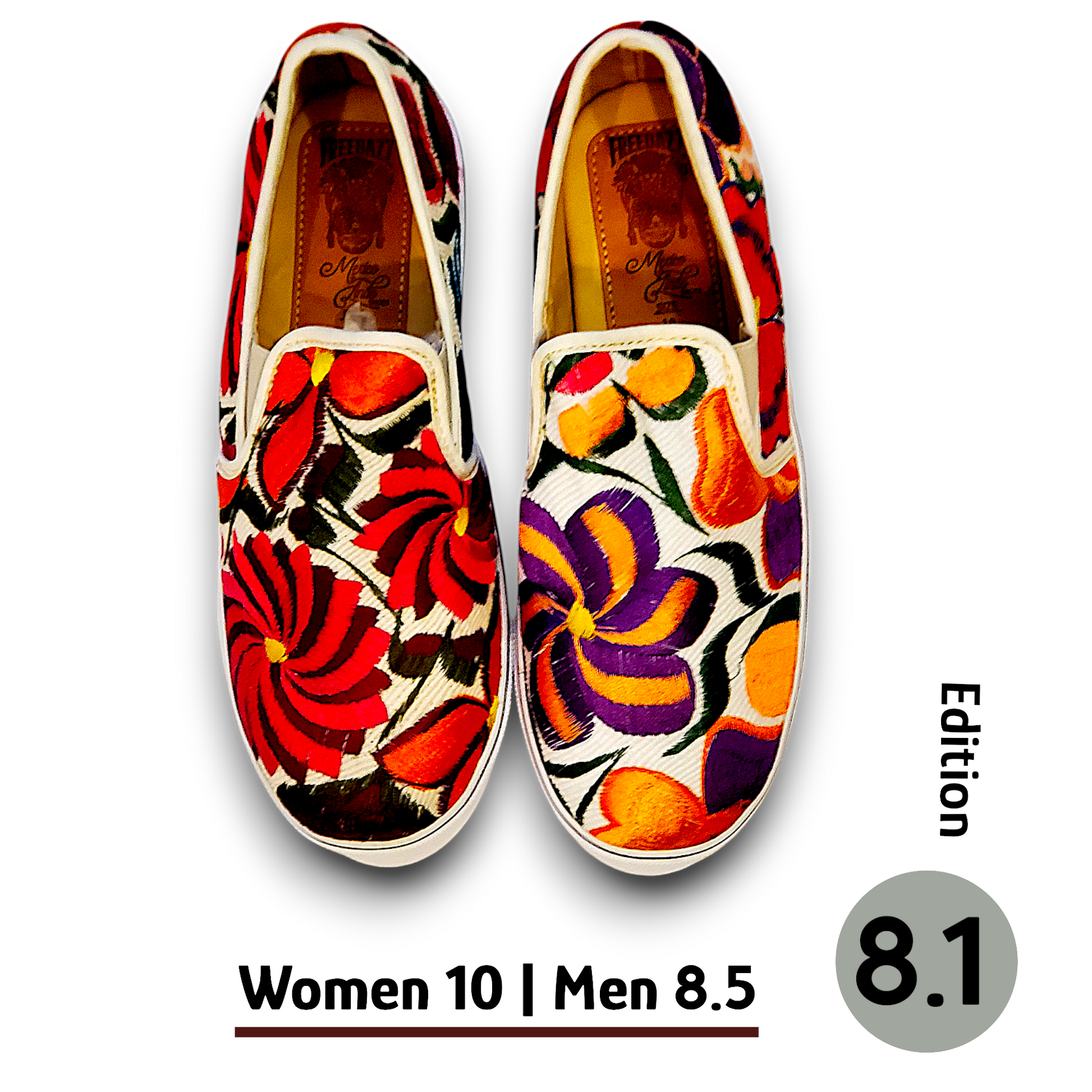 Each handmade pair is 1-of-a-kind due to variations in colors and design placement, so your shoes will differ from sample photos. Choose your exact pair by size from dropdown menu below.