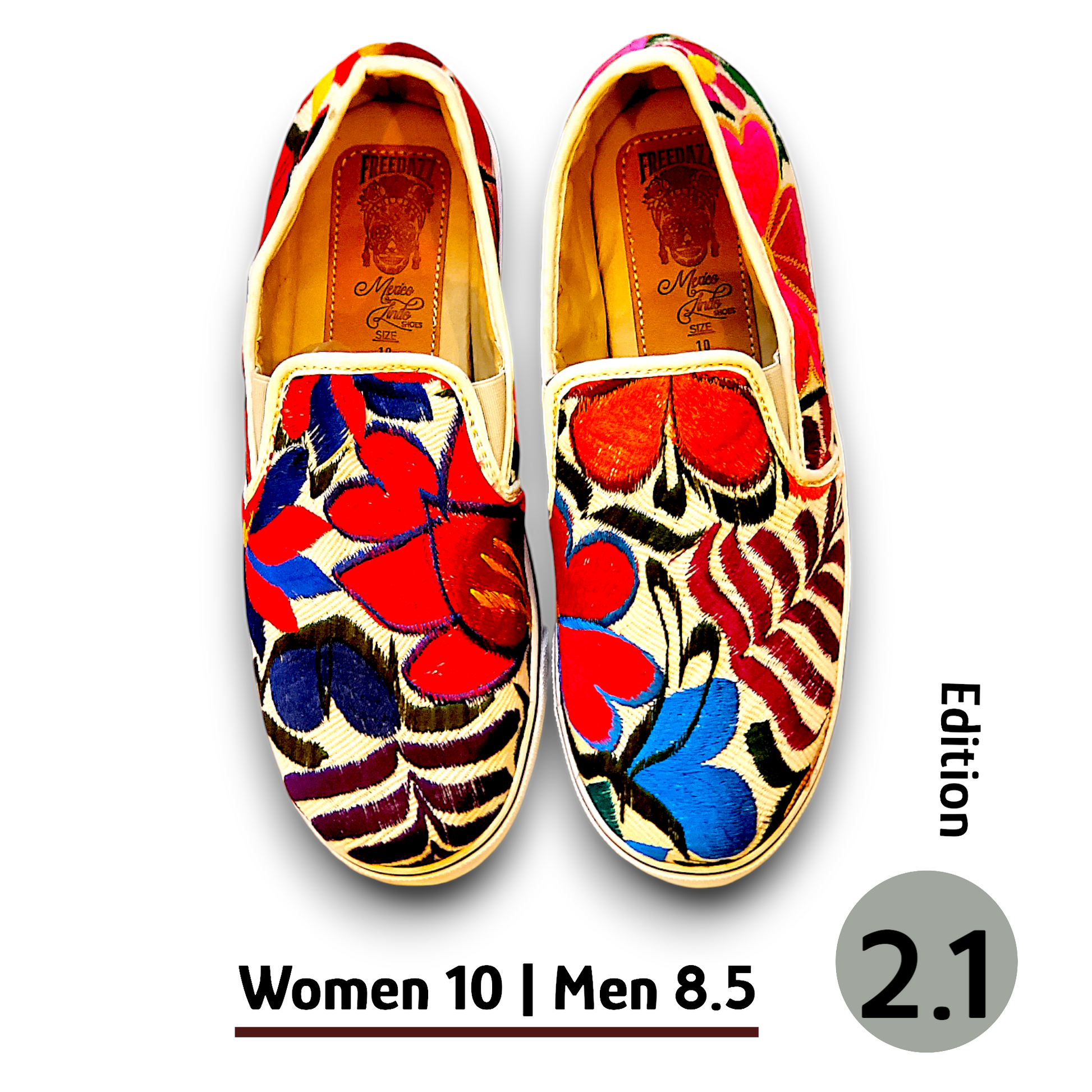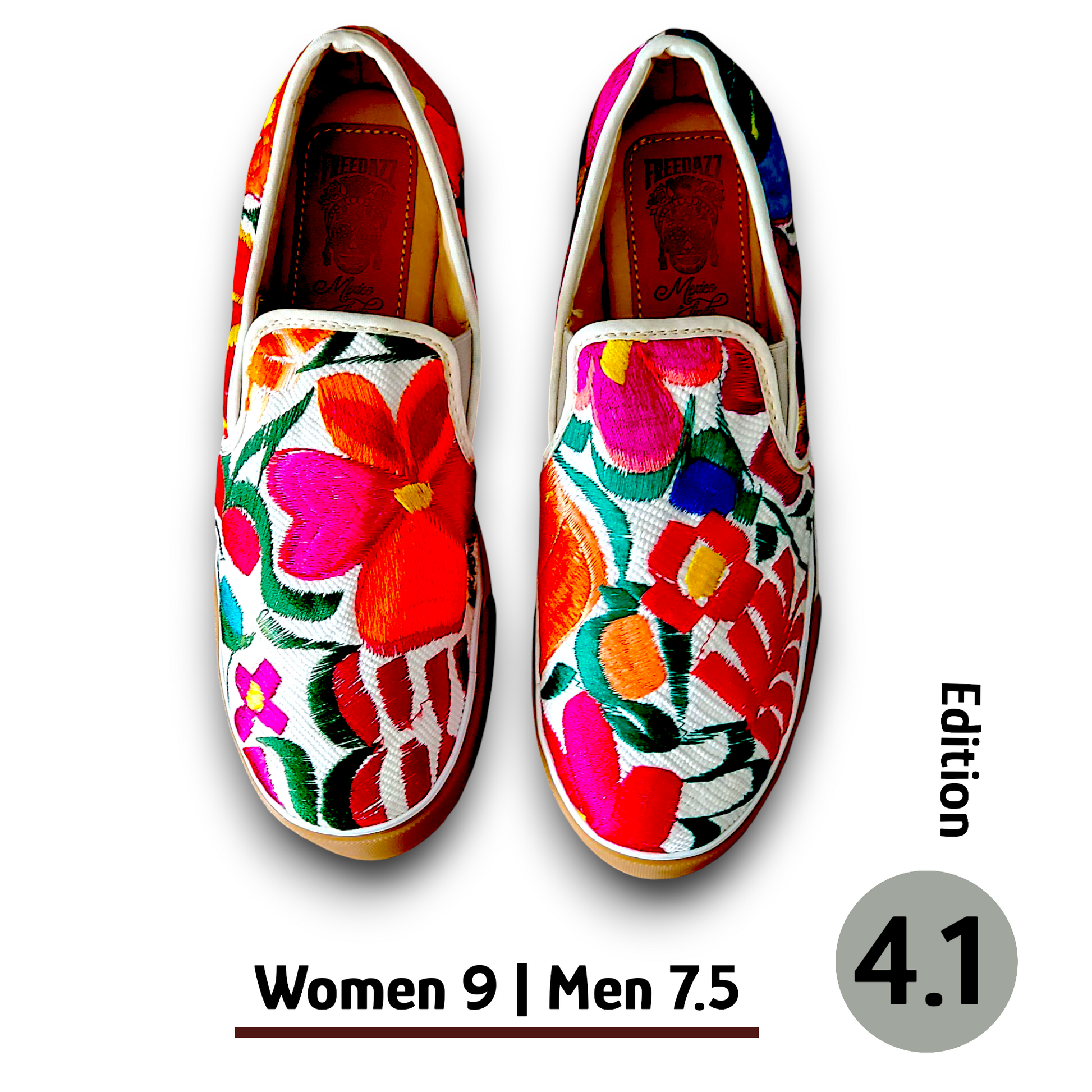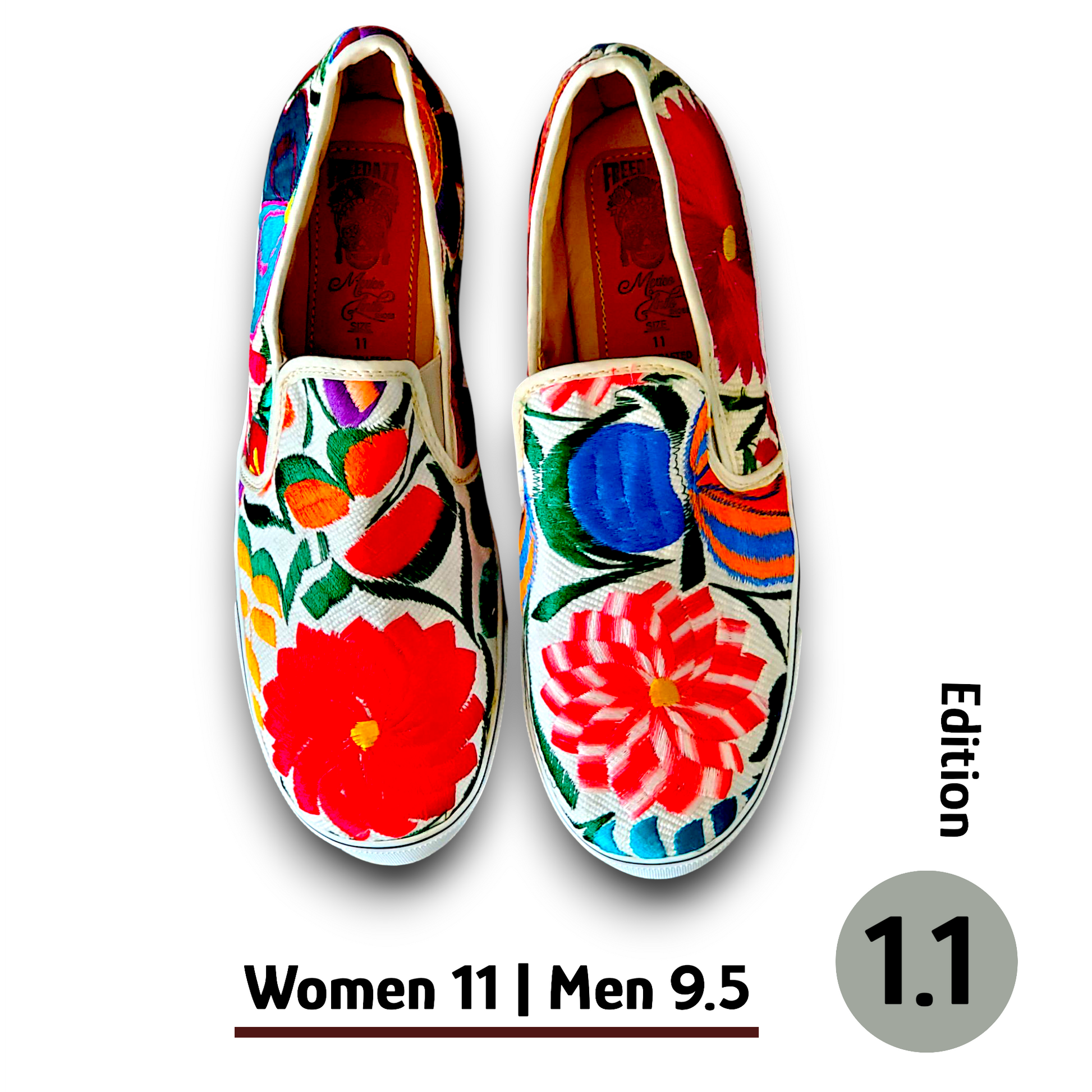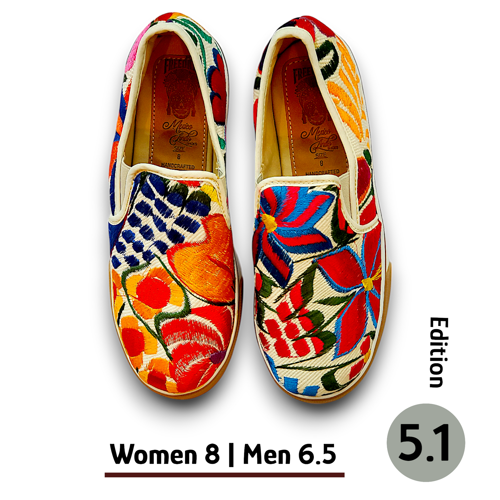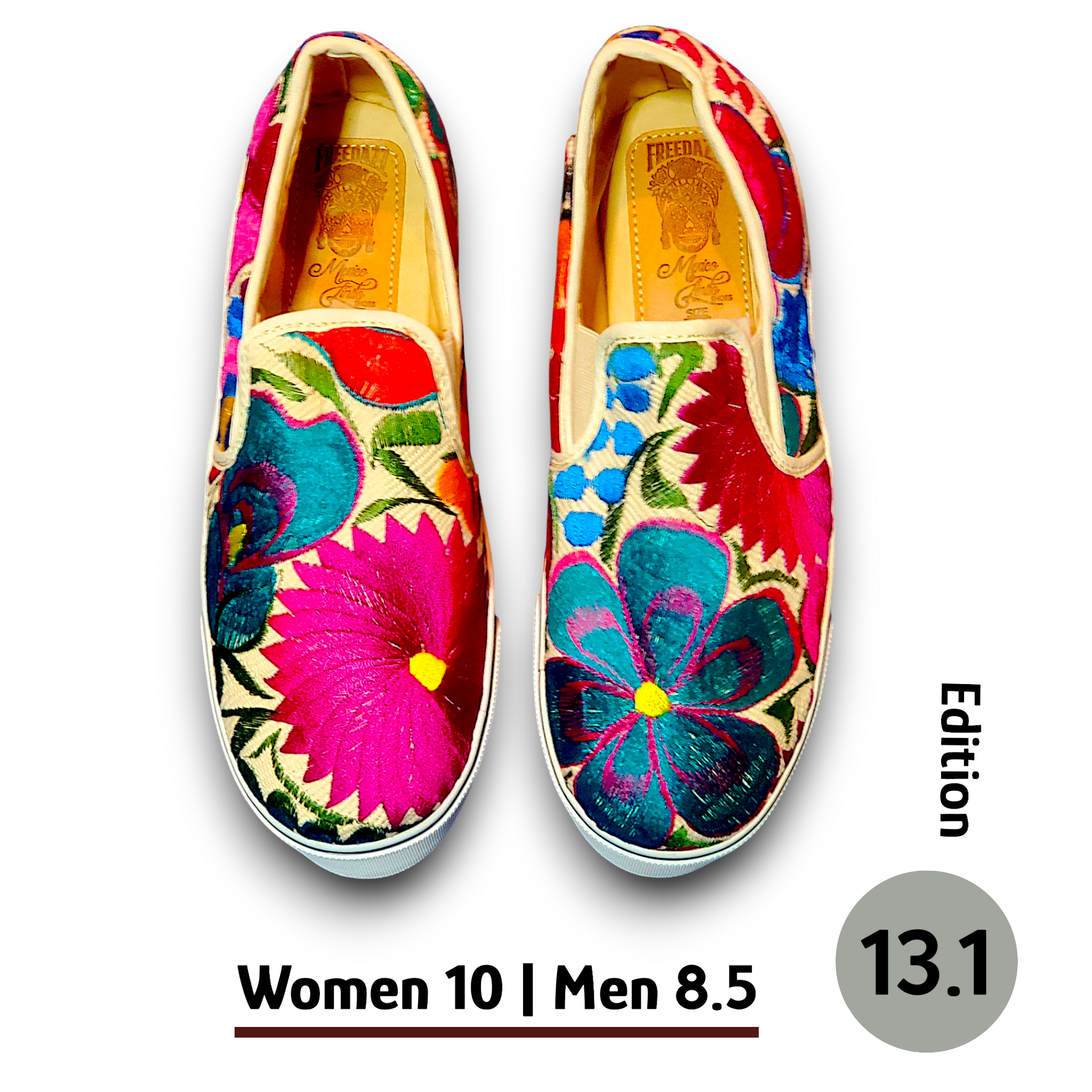 Each handmade pair is 1-of-a-kind due to variations in colors and design placement, so your shoes will differ from sample photos. Choose your exact pair by size from dropdown menu below.
