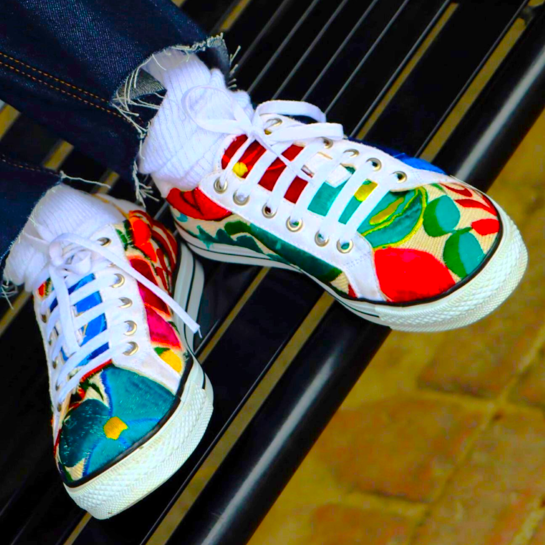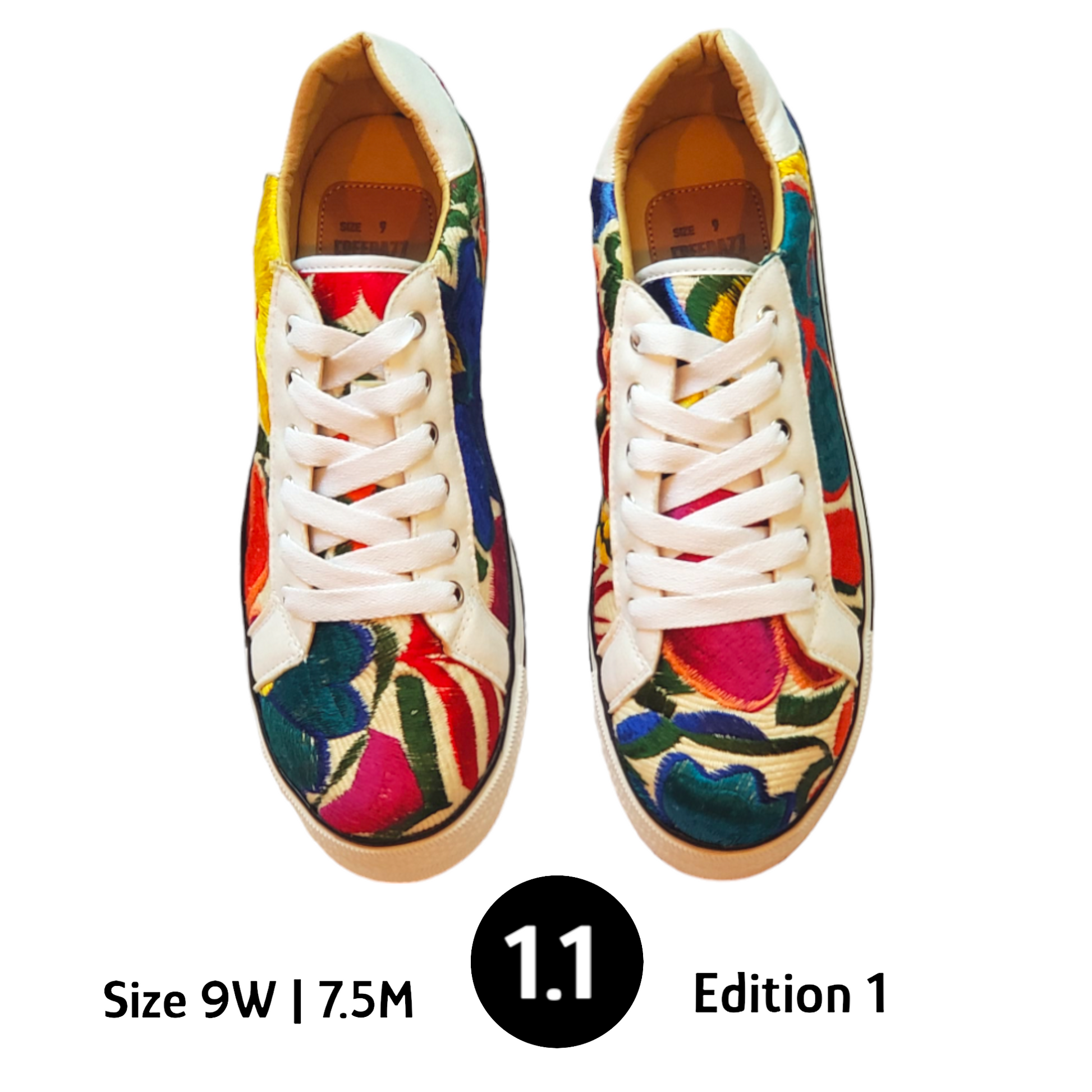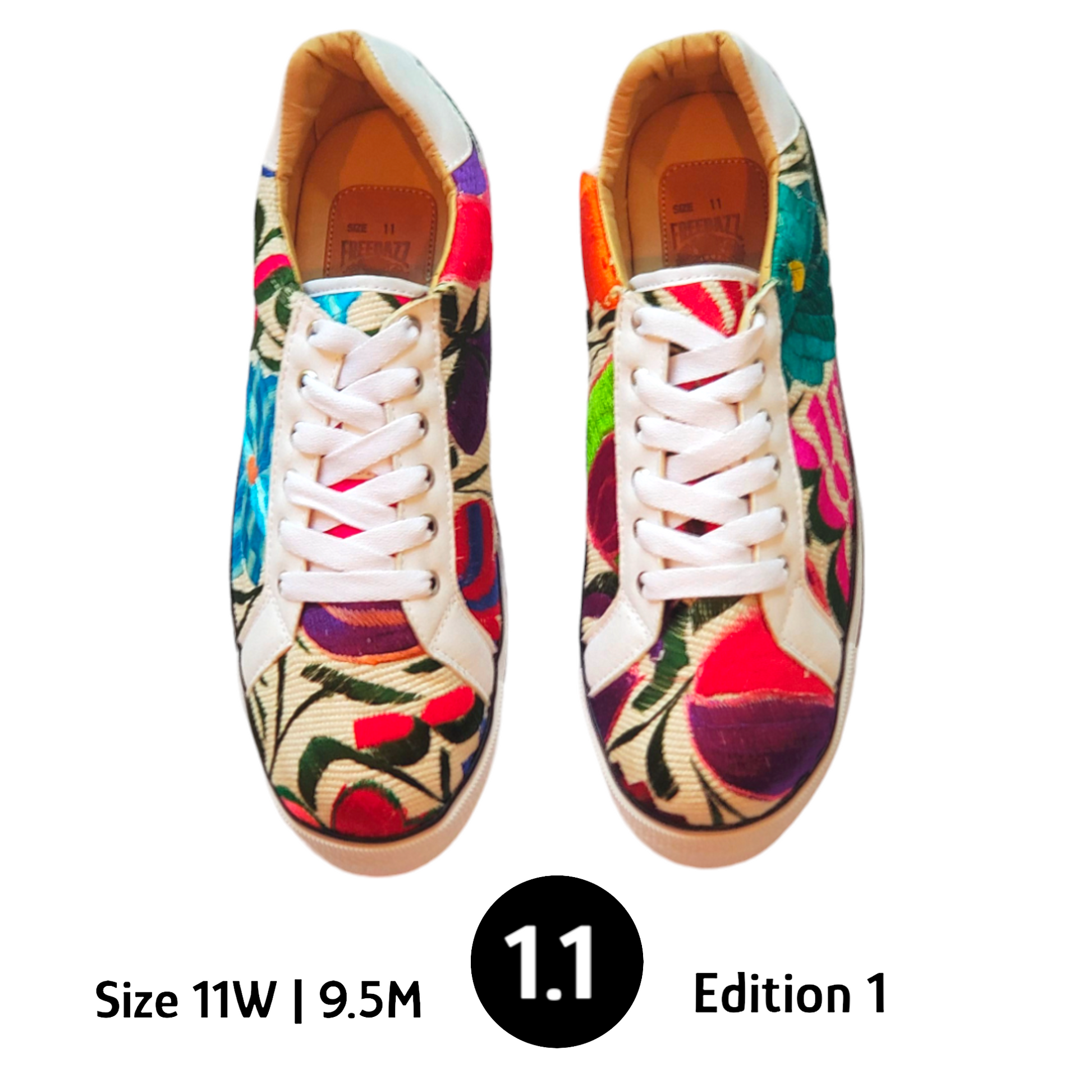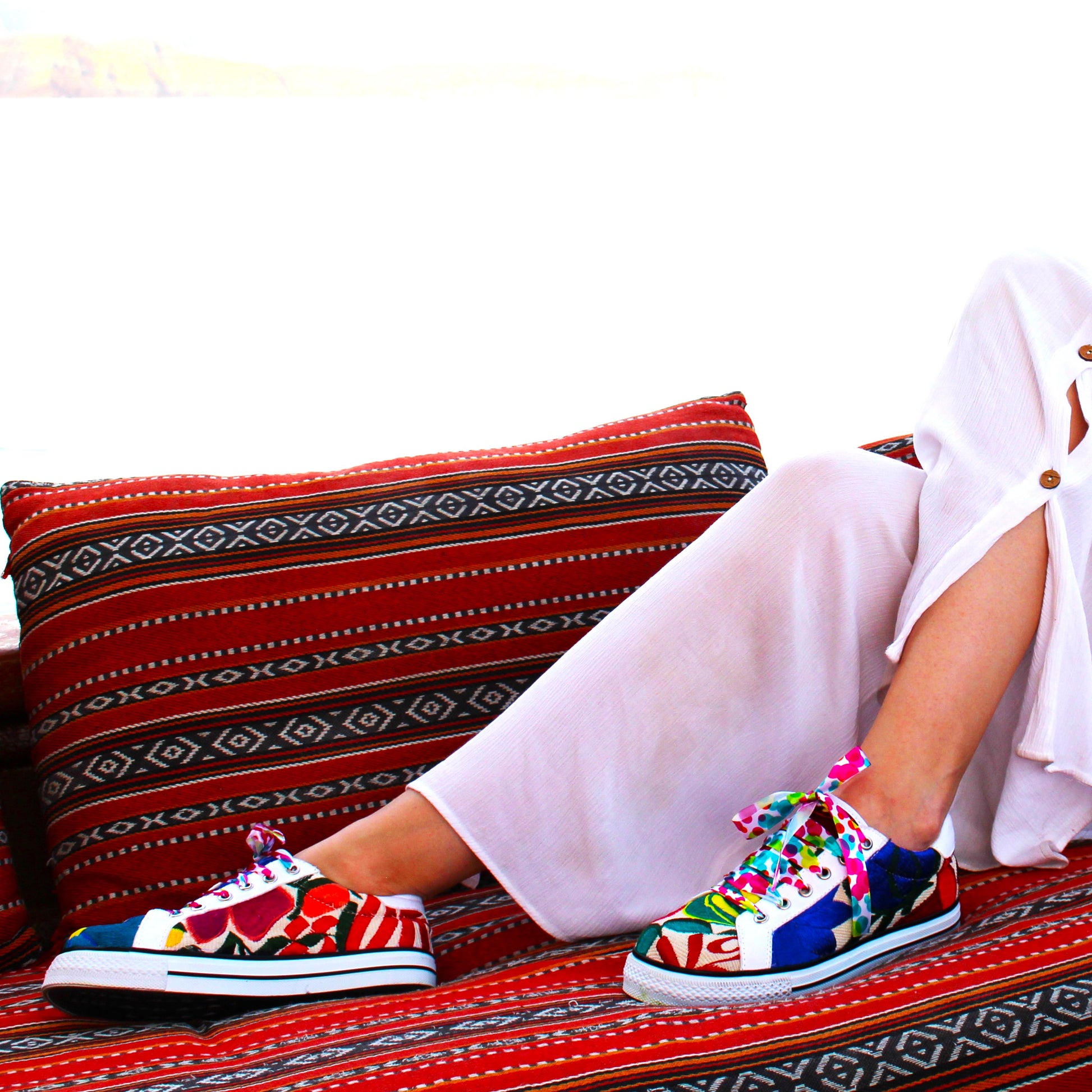 Each handmade pair is 1-of-a-kind due to variations in colors and design placement, so your shoes will differ from sample photos. Choose your exact pair by size from dropdown menu below.